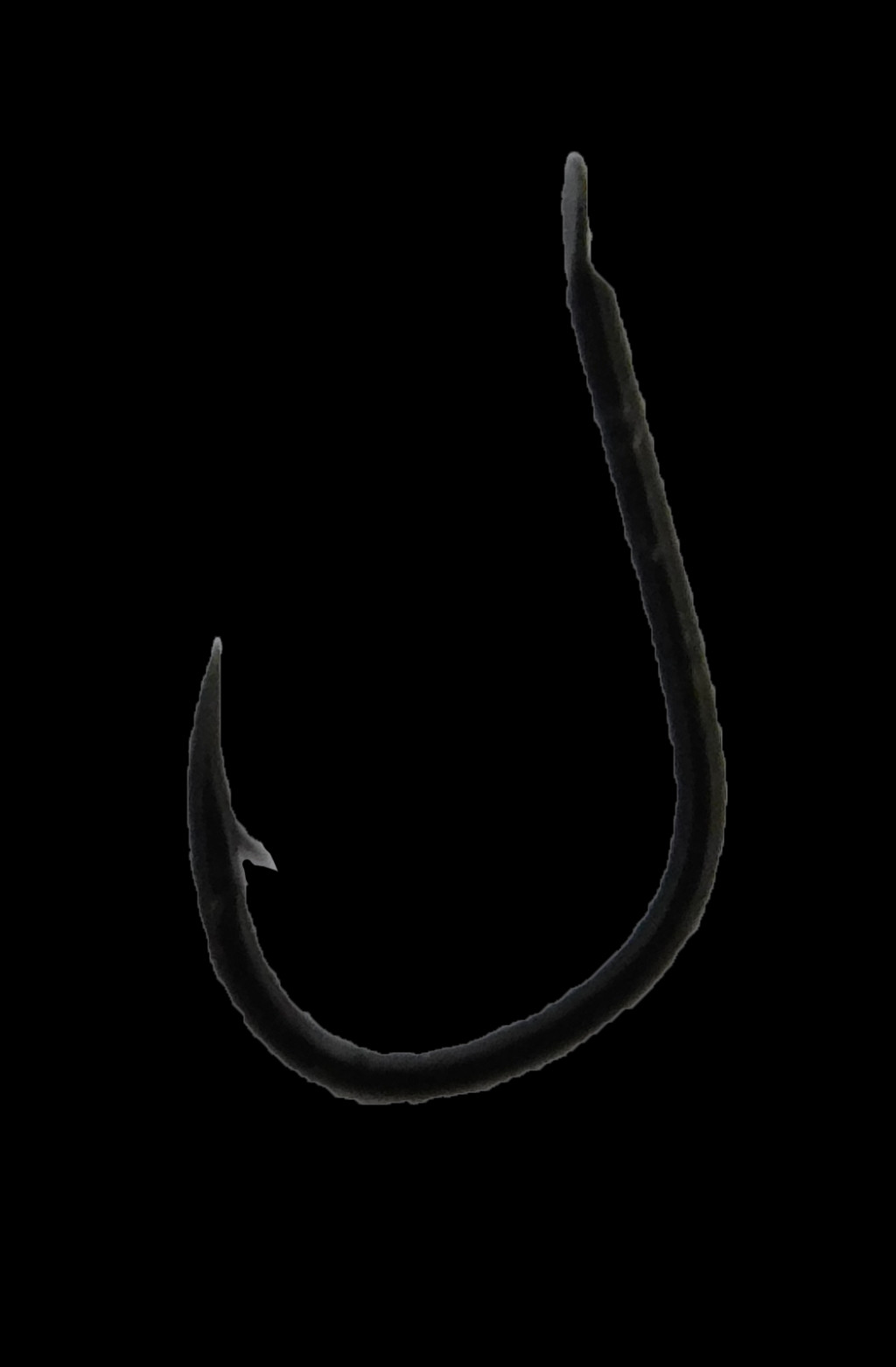 Fekete nikkel horog kerek ívvel és horogheggyel, közepes huzallal és kémiai élezéssel.